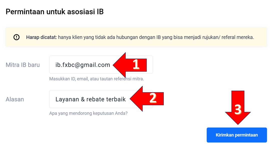 validasi diproses otomatis dan jika gagal, artinya akun trading kakak tidak dibawah IB kami kak. Ajukan pindah IB dulu ya kak, tim kami akan menghubungi kakak segera, terima kasih Cara pindah IB di broker OctaFX (terbaru)